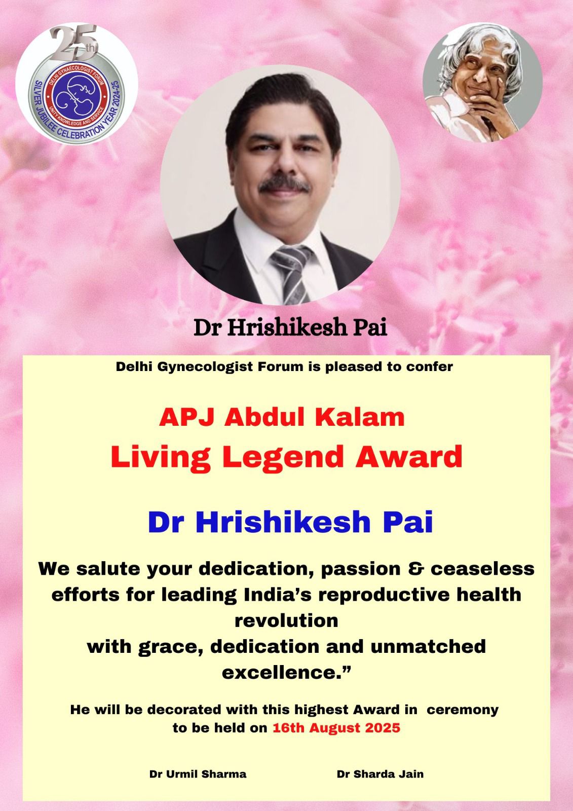 PHOTO GALLERY APJ Abdul Kalam Living Legend Award – from the Delhi Gynaecologists Forum Award Ceremony: IHW council, Delhi
